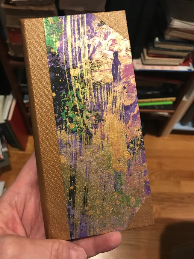 Here is one of the irregular sized books I've been binding for fun and experimentation. There are interesting issues that come up with binding books that are miniature or very narrow in shape.